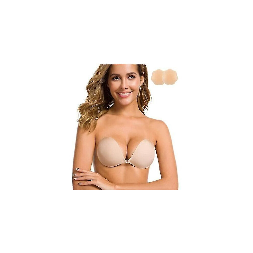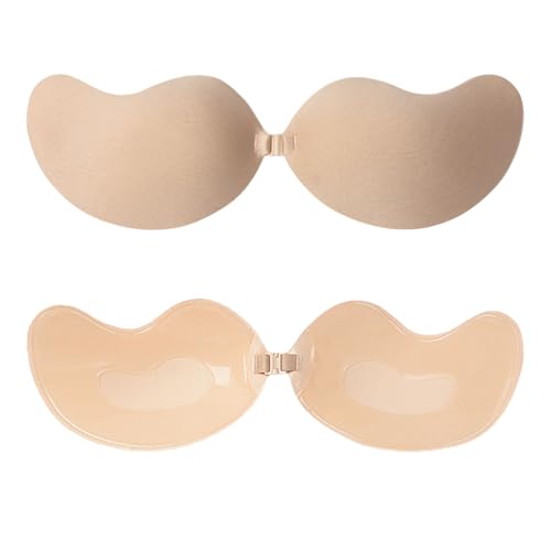 woleeup Sticky Bra Push Up - Silicone Invisible Stick on Bras, Adhesive Bra Push Up Reusable Backless Strapless Bras for Women Party Wedding Dress (C) Beige