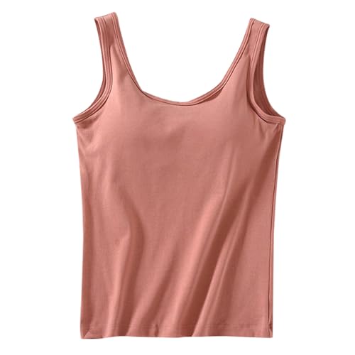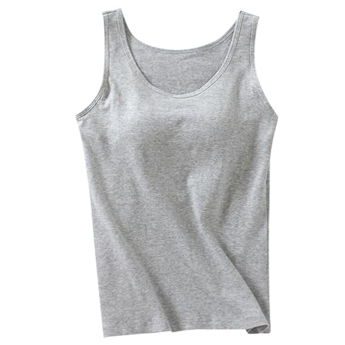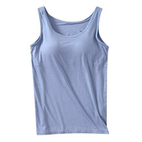 Womens Sports Vest - Women's Built-In Bra Tank Top 2024 Summer Casual Crew Neck Sleeveless Camisole Plus Size Padded Workout Vest
