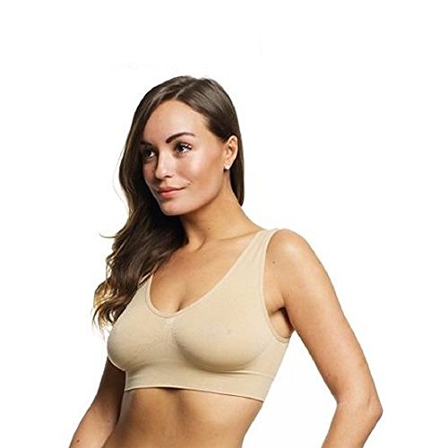 Belvia Bra Womens Soft Ultra Comfort Cozy Stretch Sports Bra Seamless Shape Wear Support Vest Top, Available in Small, Medium, Large, XL (Small - 30'' - 34'', Beige)