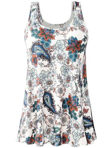 Vislivin Tank Tops for Women Built in Bra Vest Top Pleated Loose Fit Bra Camisole Casual Flowy S-XXXXL Small Flower-XXXL