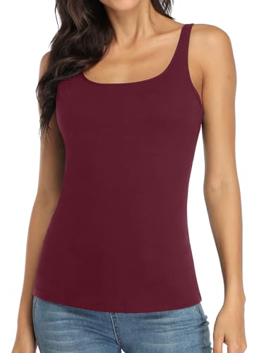 Charmo Cotton Workout Cami for Women Built in Bra Tank Top Adjustable Wide Straps Undershirt Wine Red M