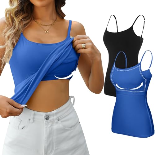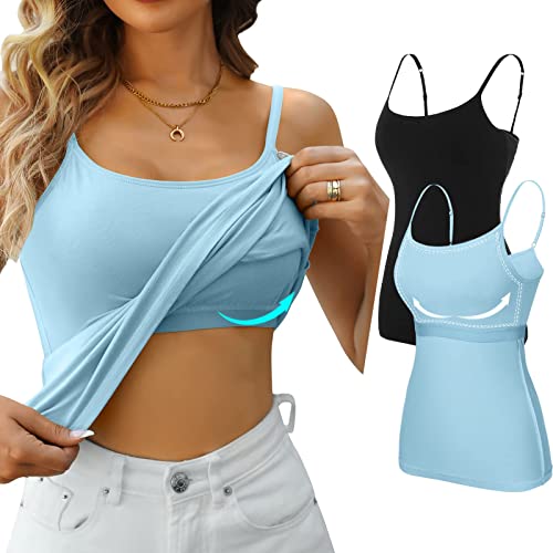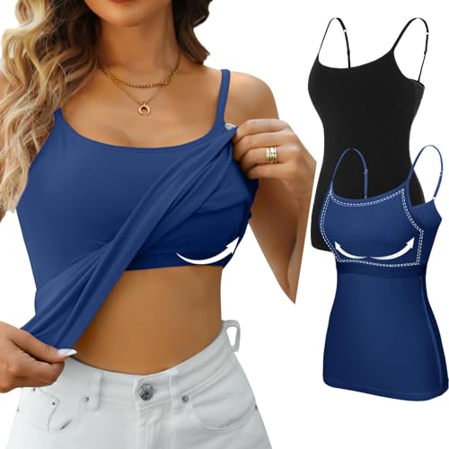 2pcs NewSuneefay Tank with Built in Bra,Tank Top with Built in Bra for Women,Camisoles with Built in Bra (1,M)