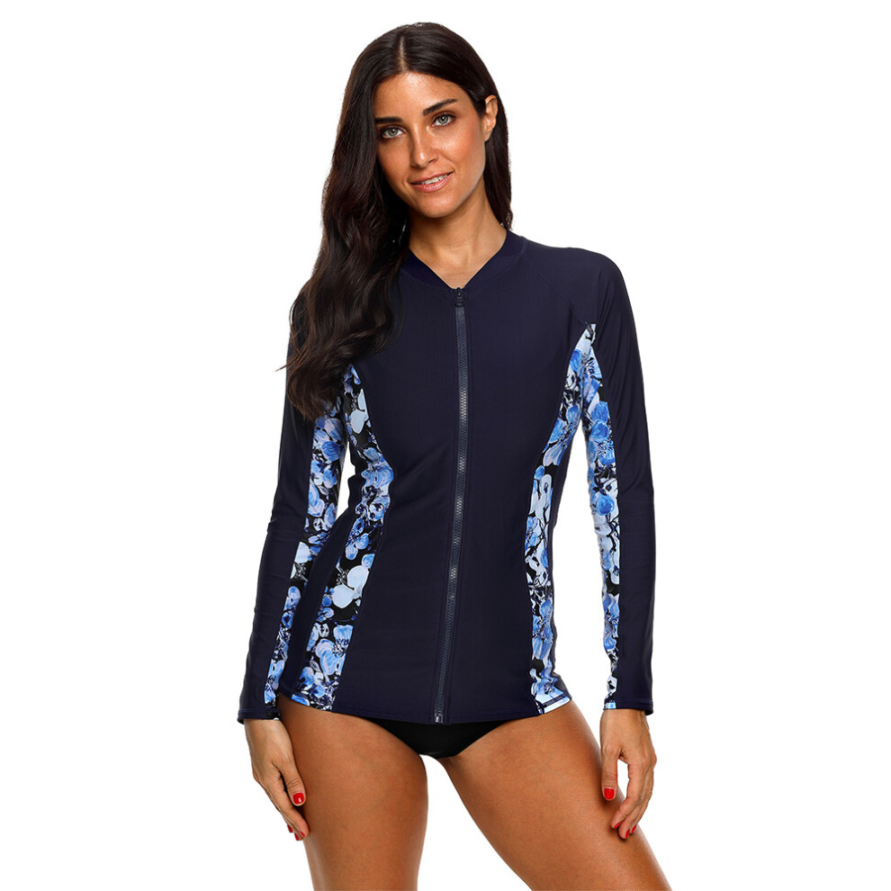 UPF Sun Protection Swimsuit For Women, Breathable Rash Guard With Front Zipper, Long Sleeve Swimsuits Featuring Built In Bra Swim Top For Swimming