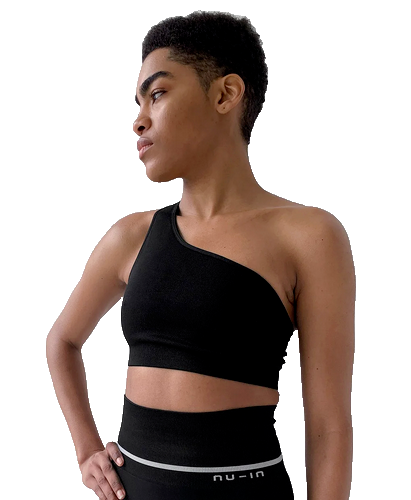 Nu-in Ladies Black One Shoulder Sports Bra 10 Small Stretch Seamless Sports Top