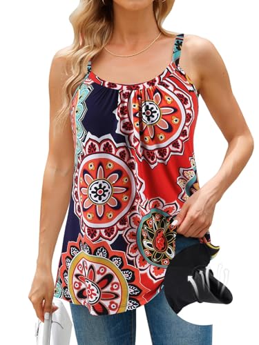 Vislivin Tank Tops for Women Built in Bra Vest Top Pleated Loose Fit Bra Camisole Casual Flowy S-XXXXL Small Flower-M