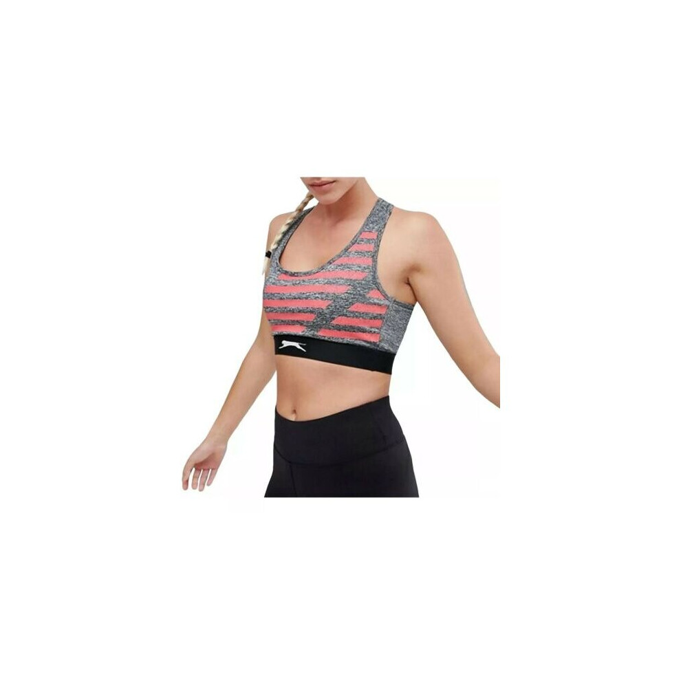 (UK12) Slazenger Womens Maxi Bra Top In Marl Grey Stretch Fabric Removable Cups