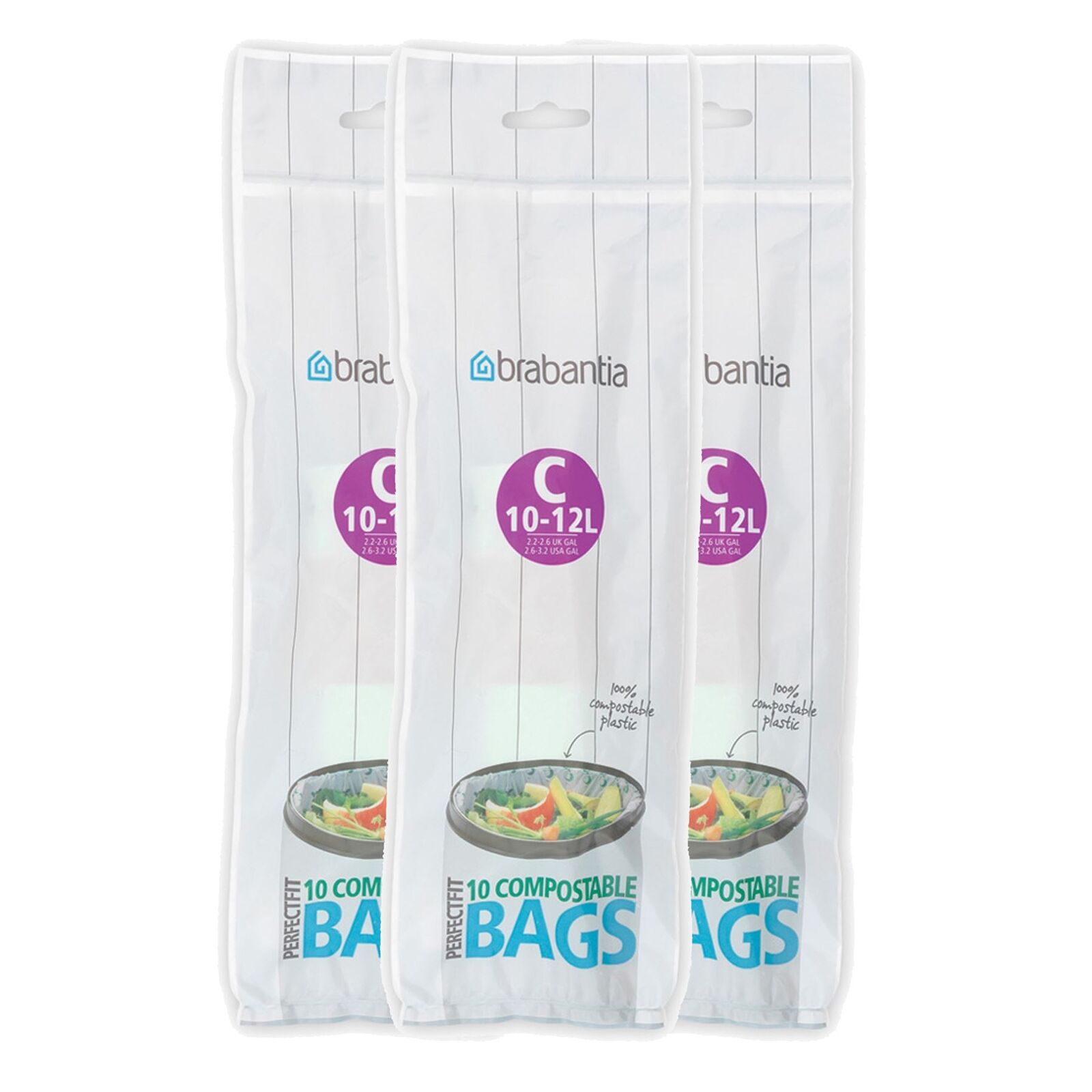 30xBrabantia 10-12 Litre-Code C, PerfectFit Compostable Sort&Go 12L Bin Bags