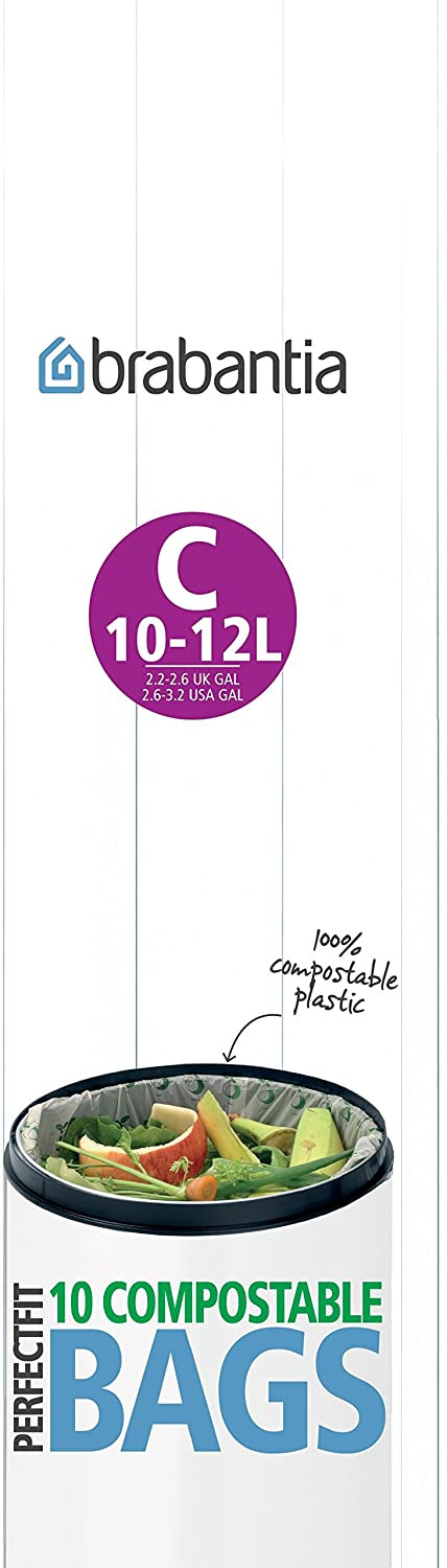 10xBrabantia 10-12 Litre–Code C, PerfectFit Compostable Sort&Go 12L Bin Bags