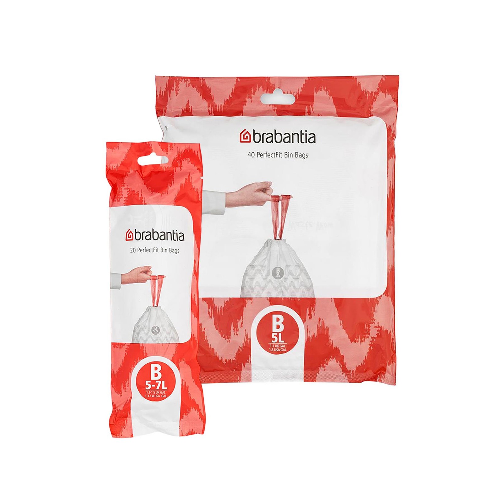 40xBrabantia 5Litre-CodeB, PerfectFit Tie Handle Bin Bags for Pedal/Slide Bins
