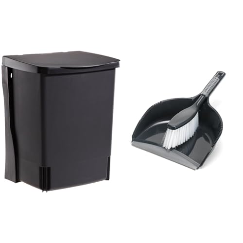 Brabantia 395246 Built-in Bin, 10 L - Black & Addis ComfiGrip Dustpan and Brush with Rubber Lip and Dirt-trapping Bristles, Metallic Graphite, 11 x 23 x 35 cm