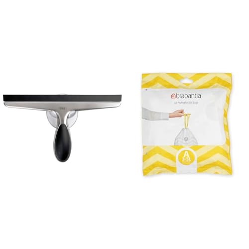 OXO Good Grips Stainless Steel Squeegee, White/Black & Brabantia PerfectFit Bin Liners (Size A/3 Litre) Thick Plastic Trash Bags with Tie Tape Drawstring Handles (40 Bags), White - Code a,137600