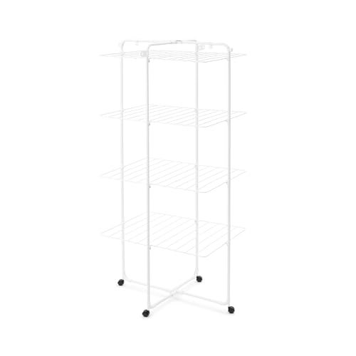 Brabantia HangOn Tower Drying Rack, 30m (White), Tall Foldable Clothes Rack, Space-Saving Laundry Drying Stand with Wheels and Hooks