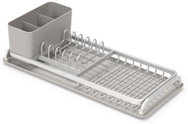 Brabantia Dish Drying Draining Rack (Compact / Light Grey) Easy-Clean Drip Tray and Removable Cutlery Basket, Corrosion-Resistant Aluminium Rack,