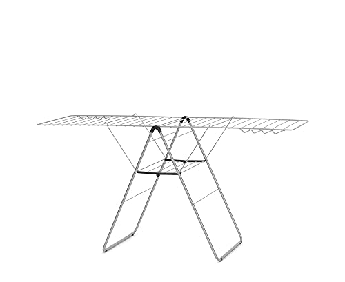 Brabantia HangOn Laundry Drying Rack (20m / Metallic Grey) Compact, Foldaway, Adjustable Indoor Stainless Steel Clothes Horse