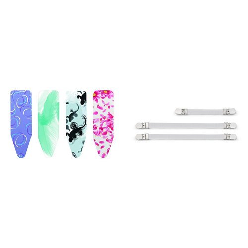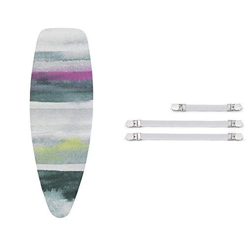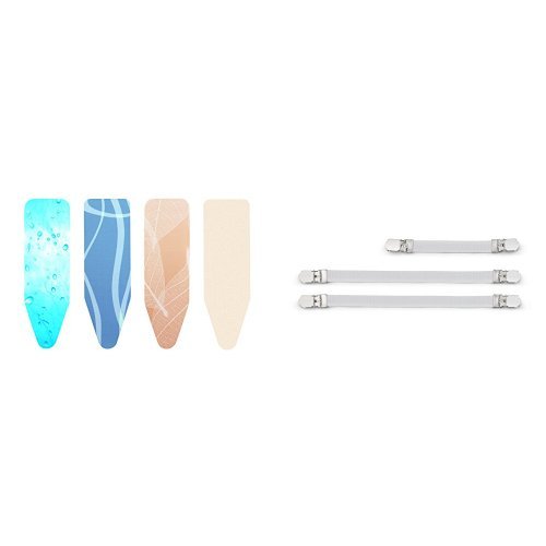Brabantia 119101 Ironing Board Cover D, 135 x 45cm, Complete Set, Cotton, Morning Breeze & 108266 Ironing Cover Fasteners - White