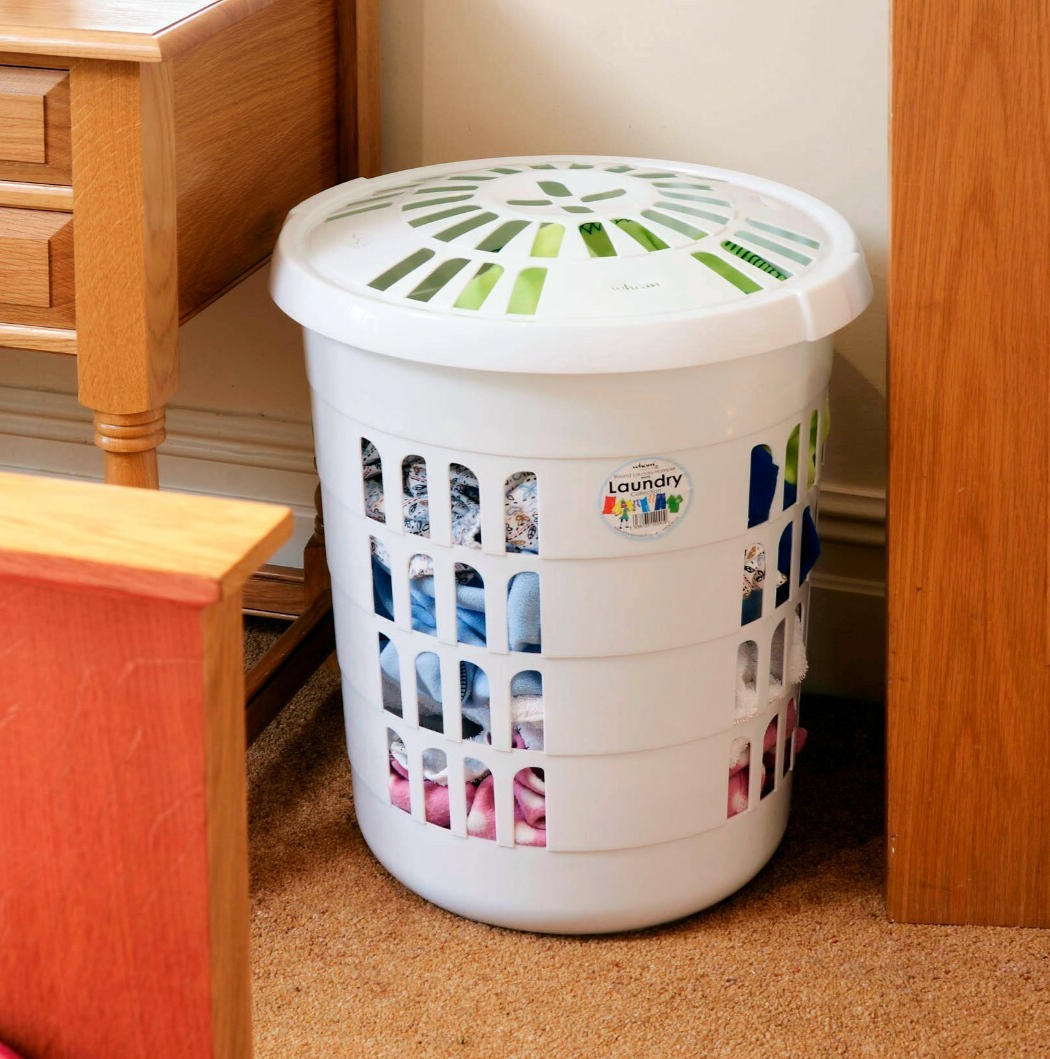 60L Plastic Large Round Laundry Basket Bin Linen Washing Storage Hamper With Lid