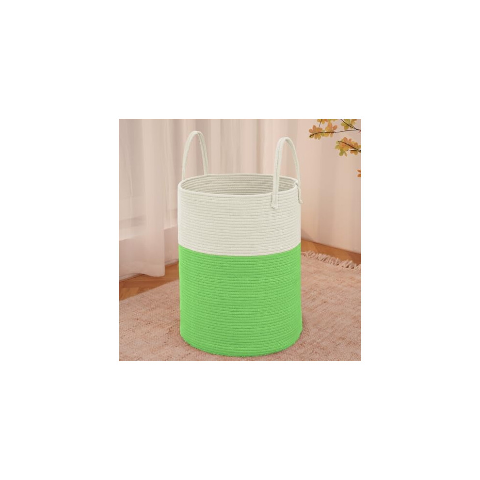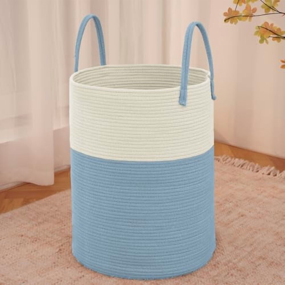 Large 60L Woven Laundry Basket Hamper â Cotton Rope Storage Bin for Clothes, Toys, Blankets; Decorative Tall Hamper for Nursery, Living Room,