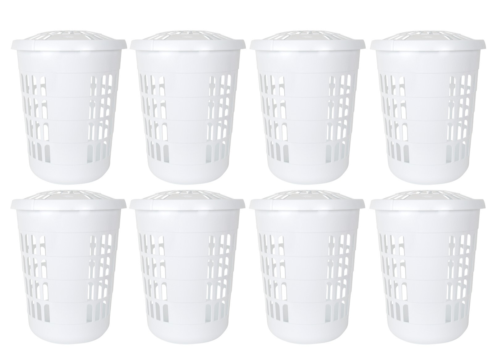 8 x 60L Plastic Large Laundry Basket Bin Linen Washing Storage Hamper with Lid