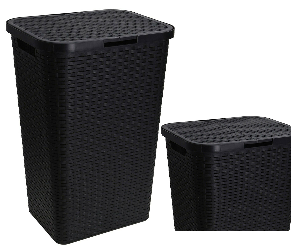 (Black) 60L Plastic Laundry Bin Basket Organiser Italian Rattan Sturdy Room
