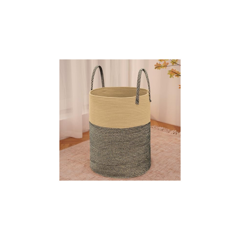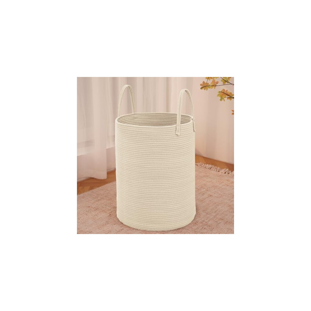 Large 60L Woven Laundry Basket Hamper, Cotton Rope Storage Bin for Clothes/Toys/Blankets, Decorative Tall Hamper for Nursery, Living Room, Bathroom,