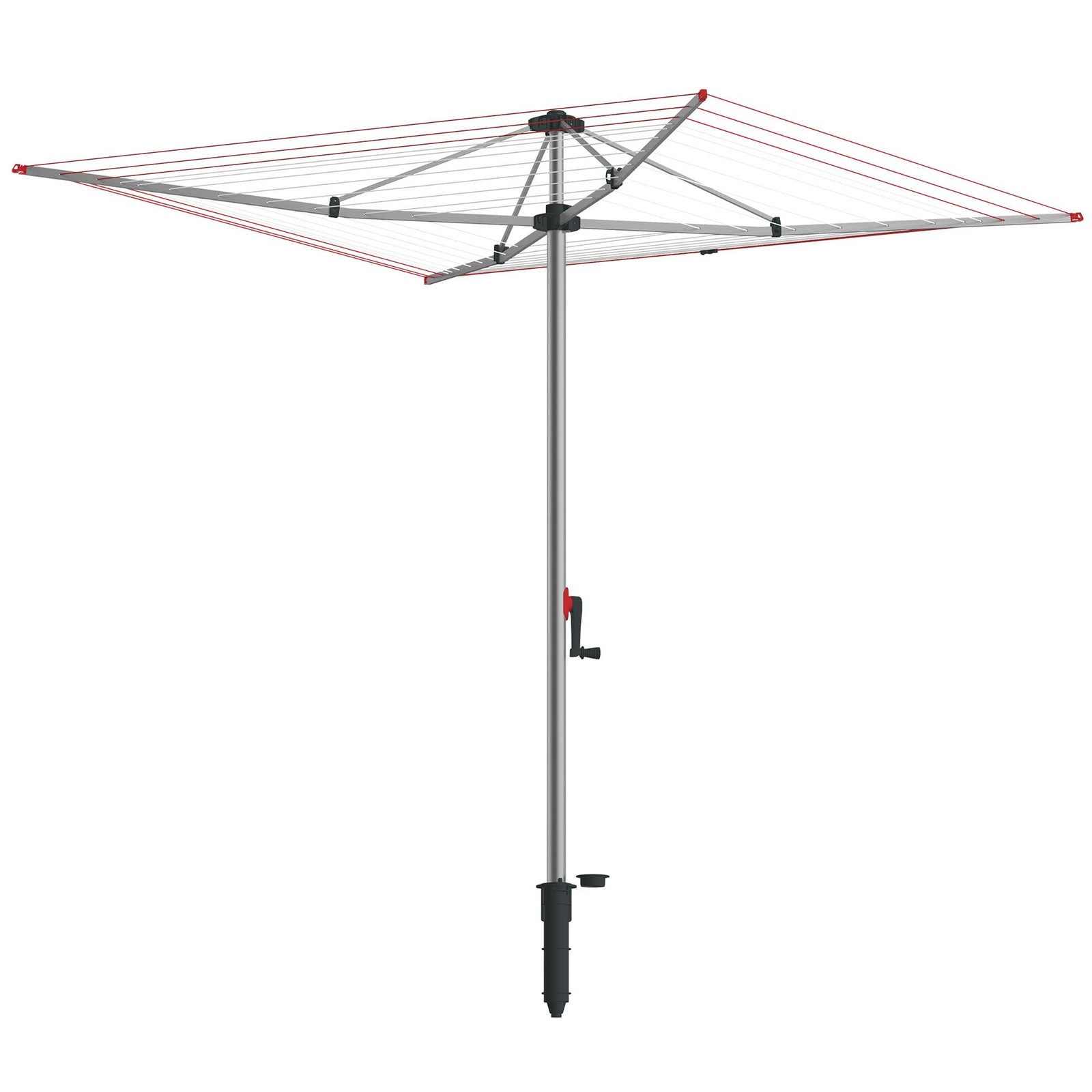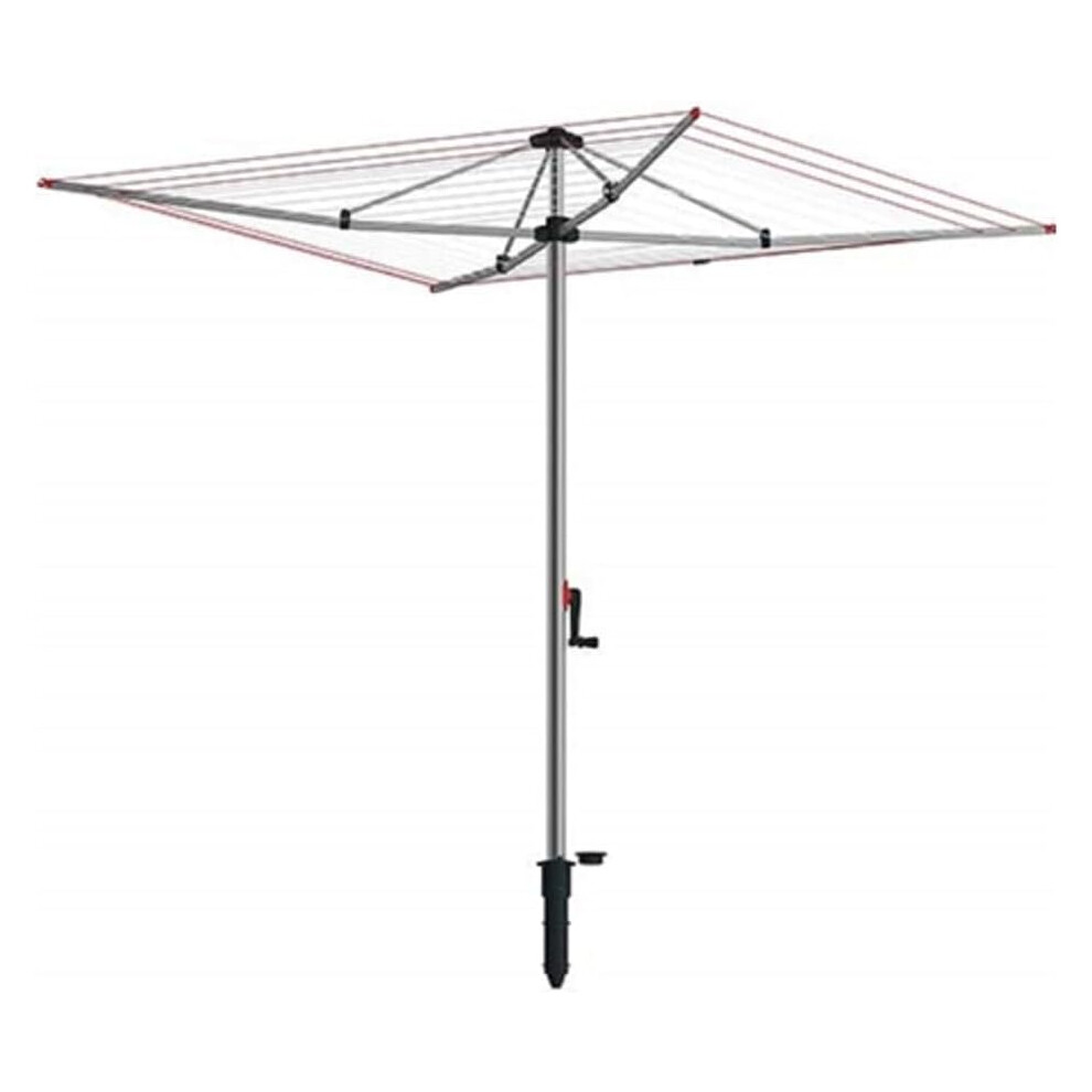 Brabantia 50m Essential Rotary Washing Line (Metallic Grey) Collapsible Umbrella System, 4 Arm Outdoor Clothes Dryer + 35mm Plastic Ground Tube