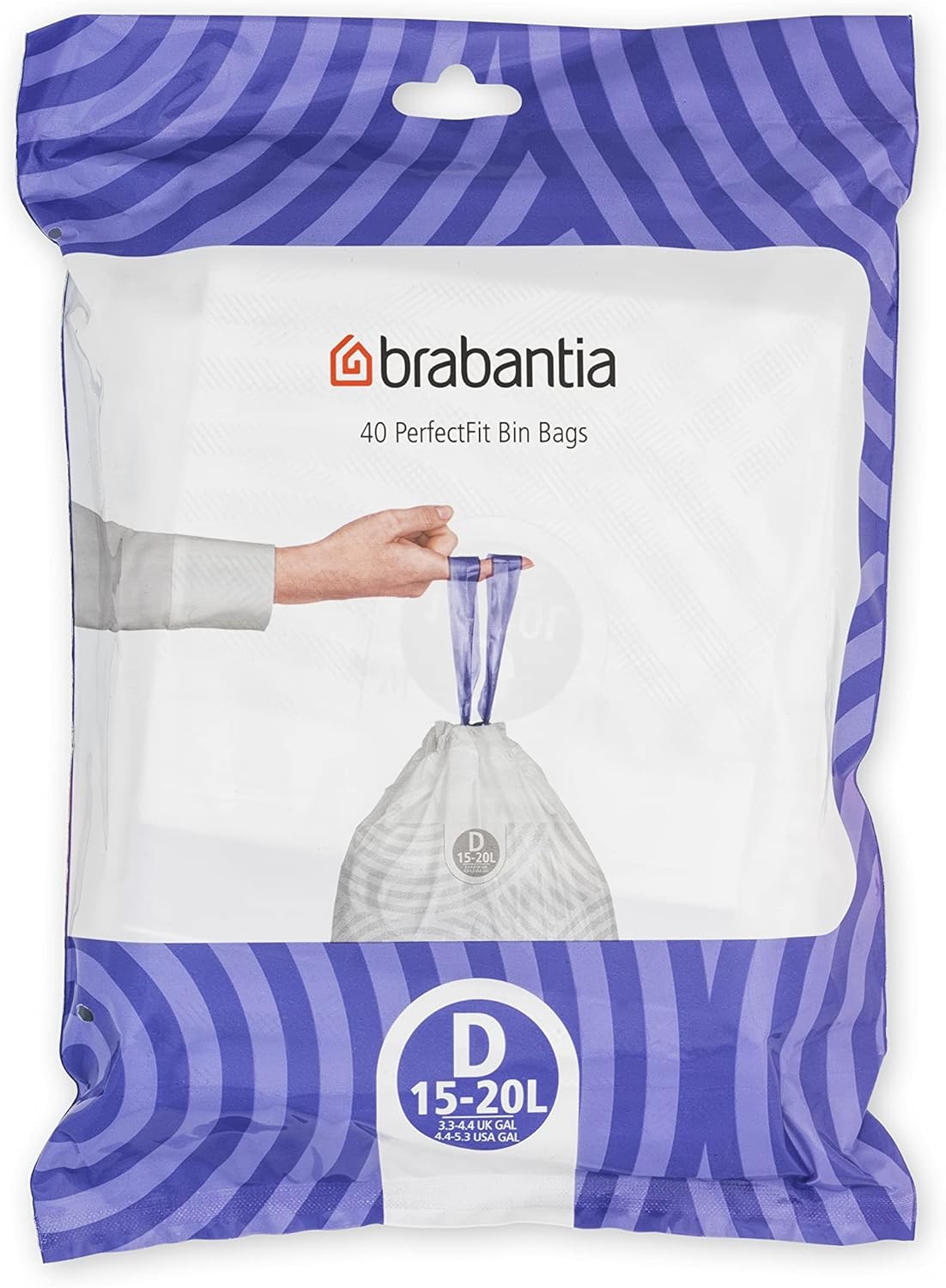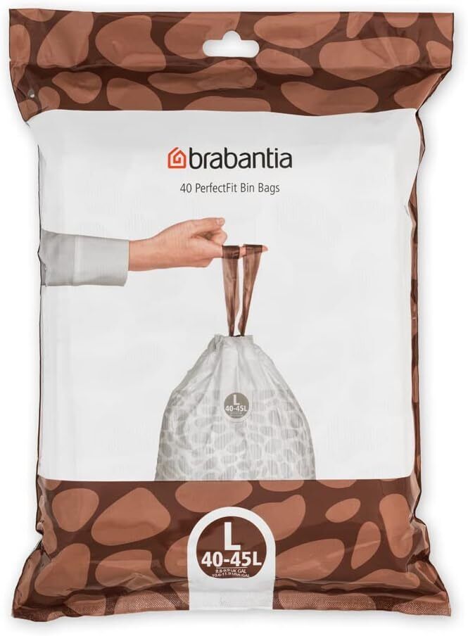 Brabantia IdealFit Bin Liners (Size D/15-20 Litre) Ideal Quality Thick Plastic Trash Bags with Tie Tape Drawstring Handles (40 Bags)