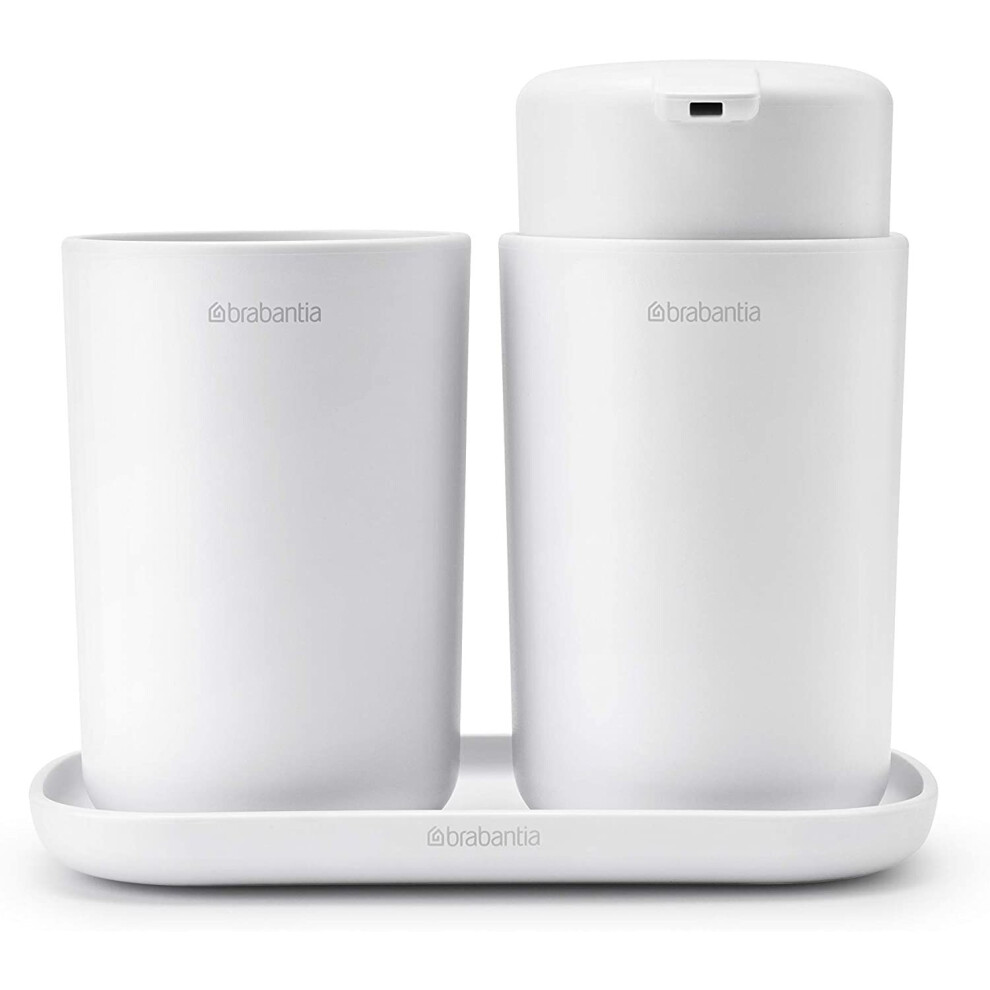 Brabantia - ReNew Bathroom Accessory Set - Soap Dispenser, Toothbrush Holder & Tray - Non-Drip Pump Mechanism - Non-Scratching - Corrosion Resistant -
