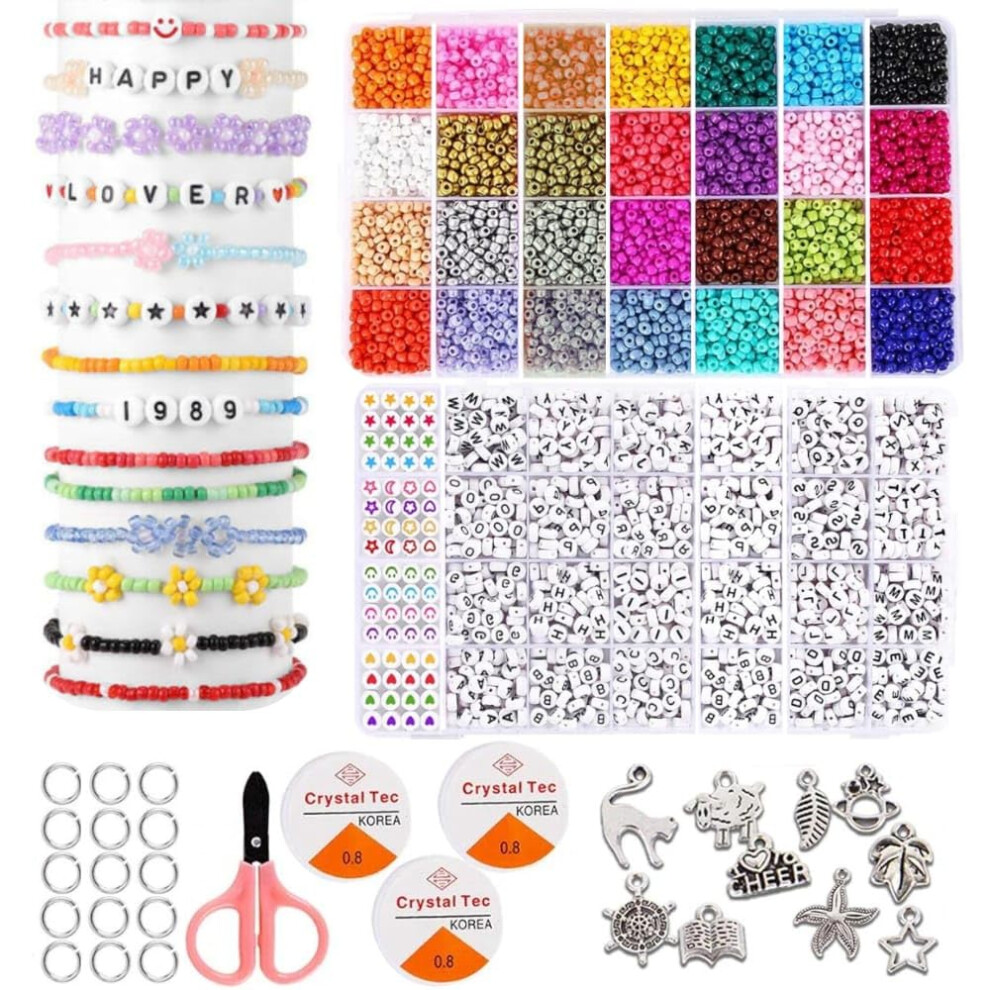 BeadzBoxx 6440 Pcs Glass Seed Beads, Childrens Necklace and Bracelet Making kit, Craft Kit for Kids, 28 Colors 4mm Seed Beads for Jewelry Making with Letter, Easter Birthday Gift for Kids