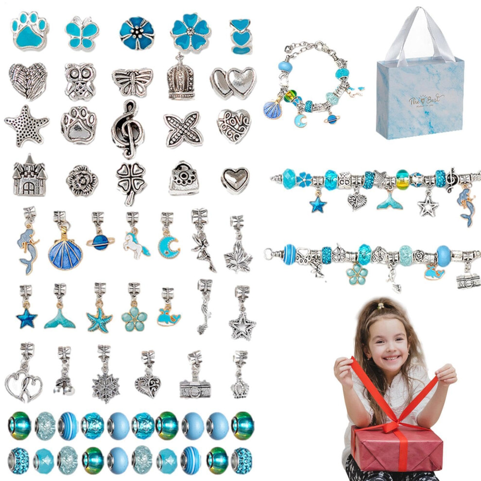 Charm Bracelet Making Kit, Bracelet Making Kit for Girls Kids Jewelry Bead Set, Friendship Bracelet Necklace Set Blue