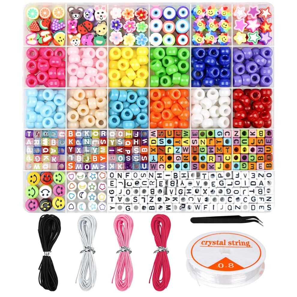 Bracelet Making Kit for Creative Kids, DIY Jewelry Making Craft Set with Pony Beads and Polymer Clay Beads, Friendship Bracelet Kit with Elastic