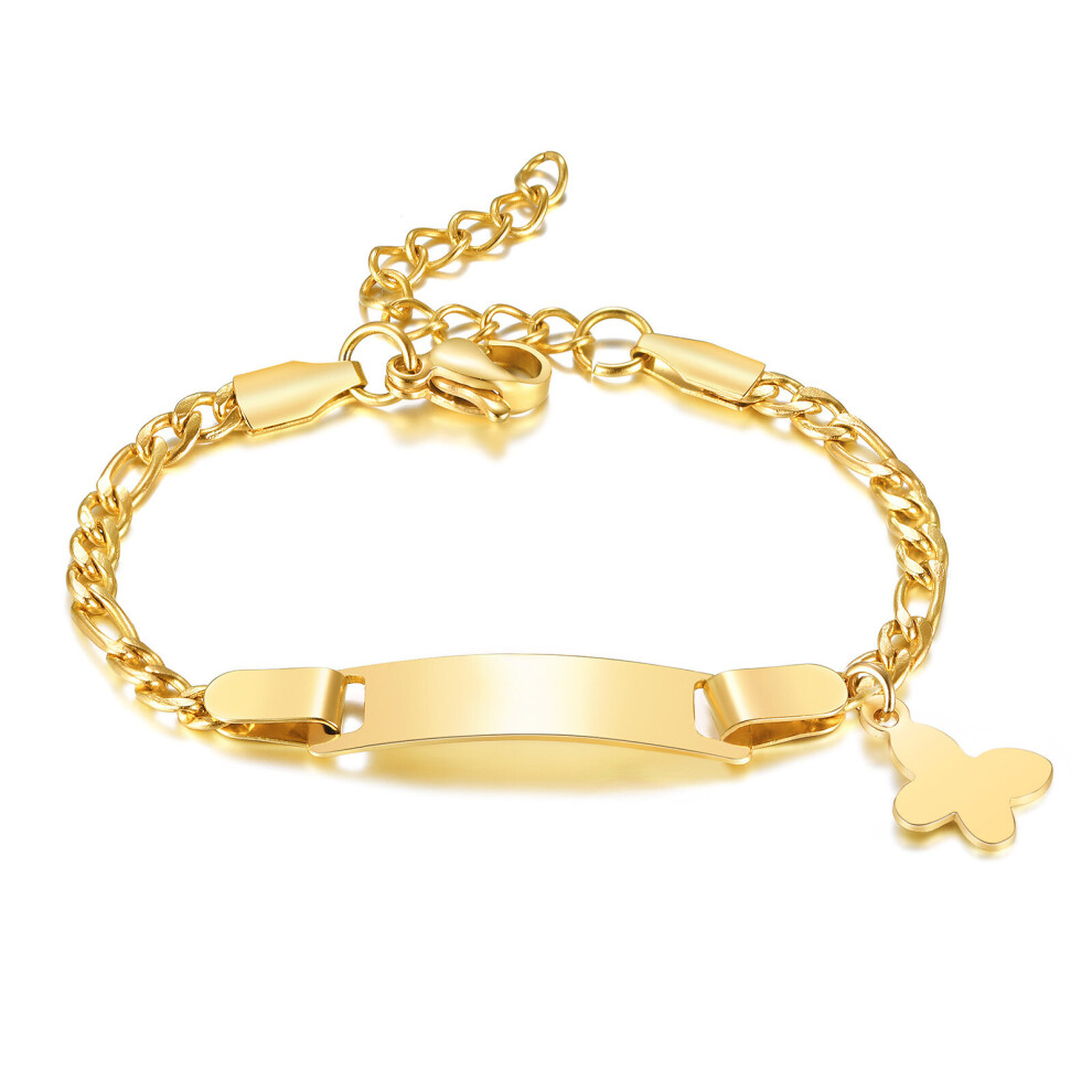 (Hot Stamping, 16.5cm) Personalized Butterfly Newborn Baby Bracelet Name Chain Link Wristbands for Gilrs Boy Children