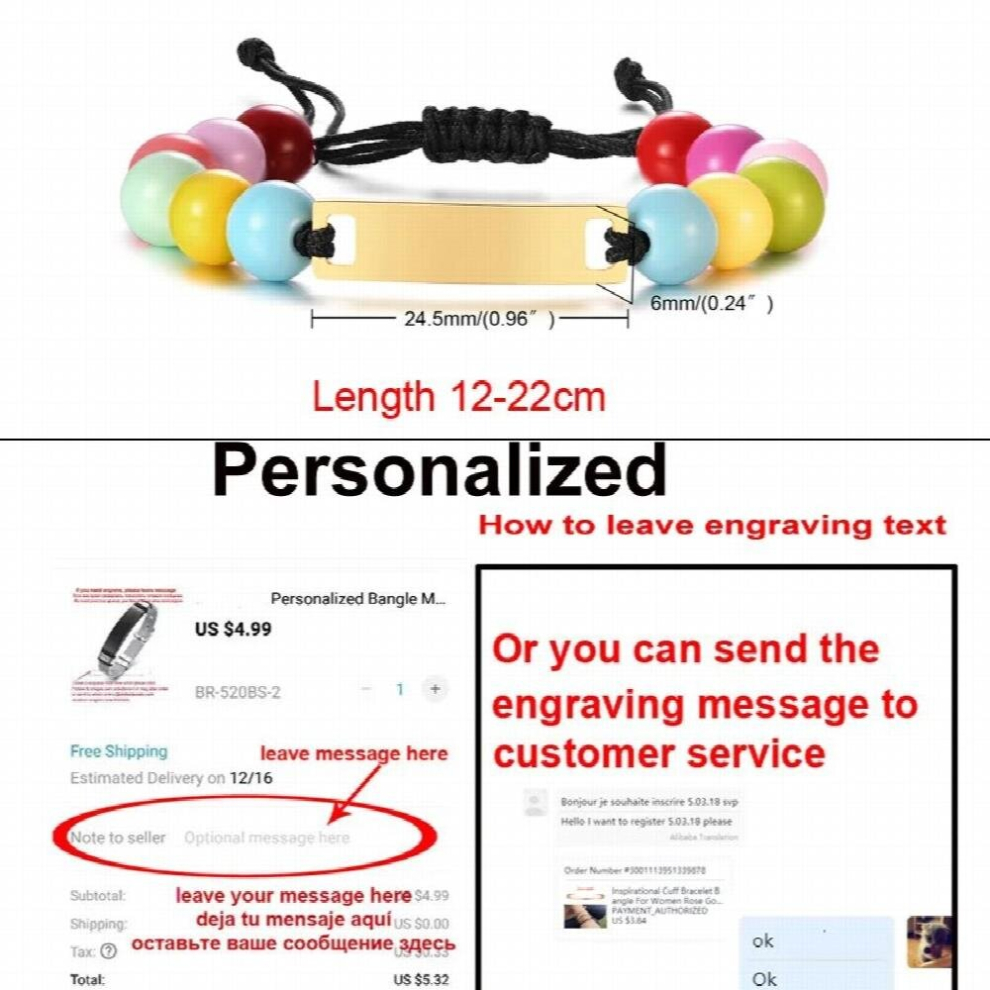 Baby Bracelet Beads Chain Link Adjustable Name Personalized Charm for Newborn Children