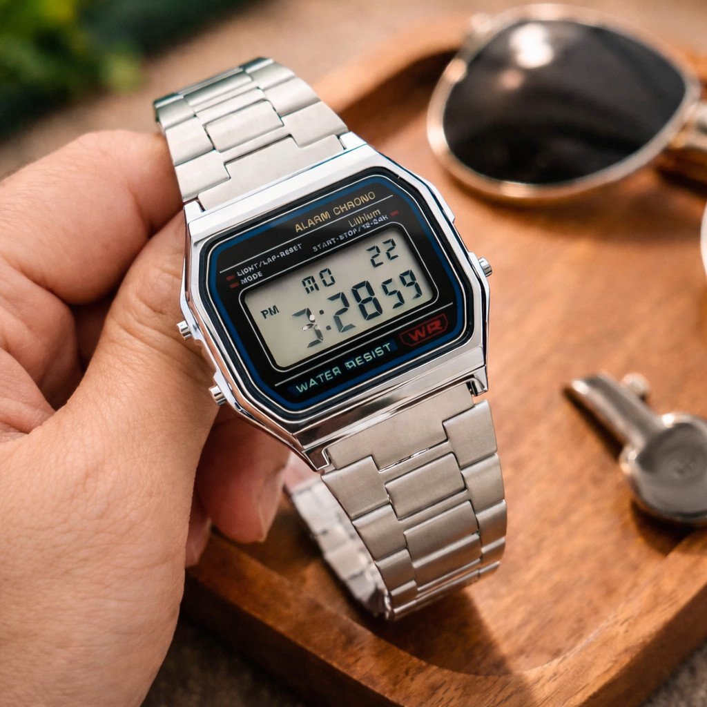 NEW Retro Classic Unisex Digital Steel Bracelet Watch A158WA-1YES Silver