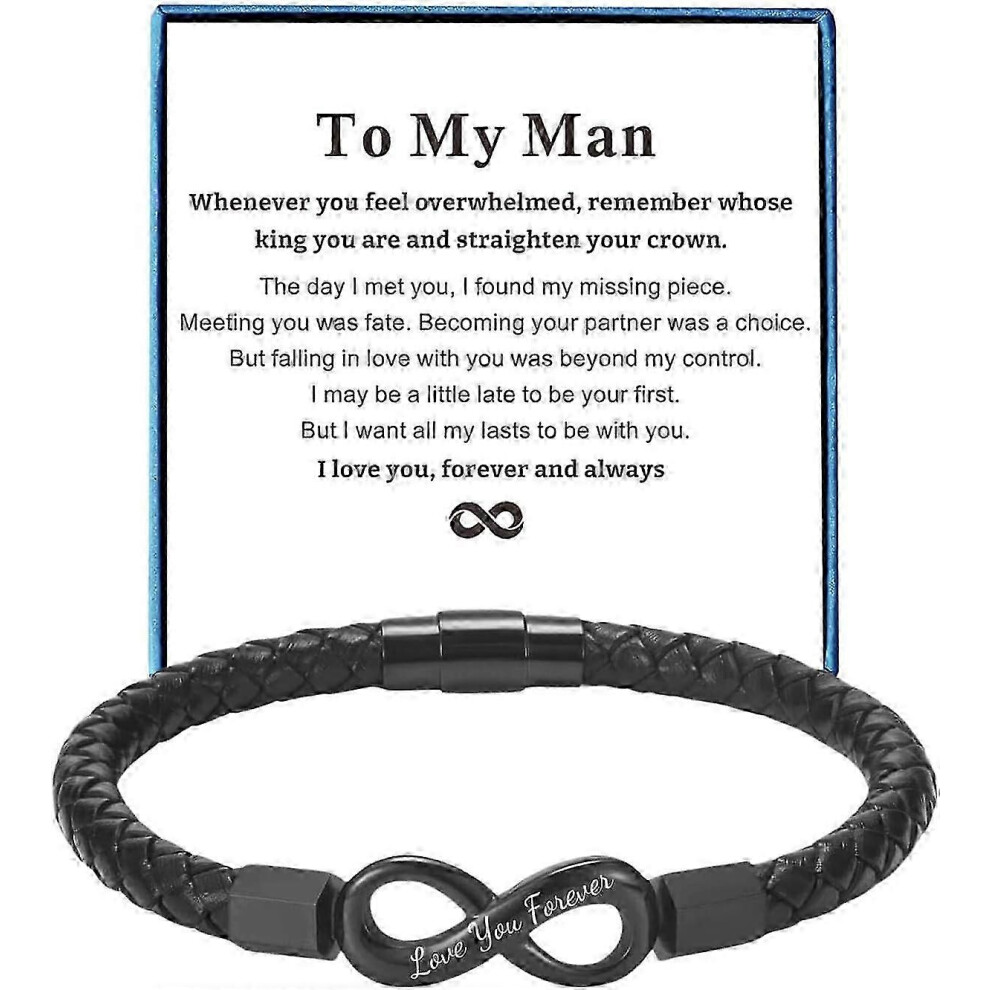 (8.5 inch)To My Man Bracelet for Boyfriend Husband Mens Infinity Leather Bracelets Valentine Birthday Fathers Day Christmas Gifts for Him