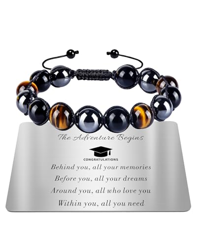 TOLOWOBK Mens Bracelets Gifts Tiger Eye Crystal Bracelet for Men Boys Personalised Triple Protection Beaded Bracelets for Men, Fathers Day Graduation Birthday Gifts for Him Dad Son Husband Brother