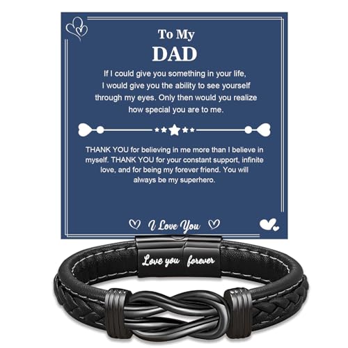 YBISNAIRE Mens Gifts Husband Christmas Valentines Day Fathers Day Birthday Gifts for Husband, Cool Love Infinity Leather Bracelets Gift for Him, Ideas Present for Anniversary Retirement Graduation