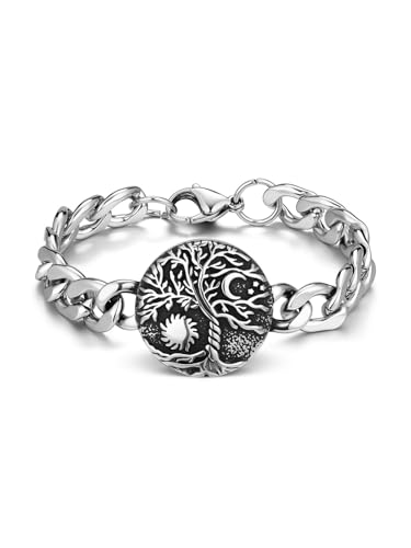 Jovivi Mens Silver Bracelets for Men,Tree of Life Sun Moon Stainless Steel Silver Chain Bracelet Boys Men's Jewellery Gifts for Men Birthday Christmas Valentines Fathers Day