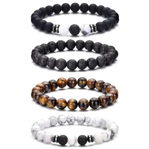 MOROTOLE Mens Bracelet Bead Tiger Eye Natural Stone Bracelets for Men Lava Stone Bracelets for Men Women Teen Boys Gifts Anniversary Fathers Day Birthday Gifts for Him