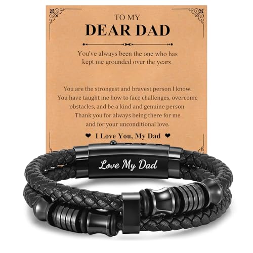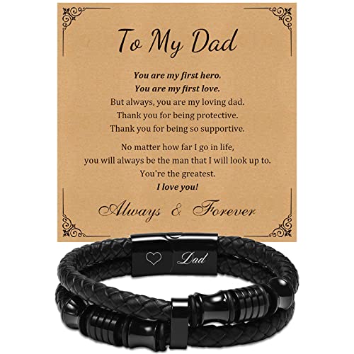FLHEART Gifts for Dad Mens Bracelets - Black Braided Leather Bracelet Engraved Love My Dad for Men, Daddy Gifts from Daughter Son, Gift For Father's Day Birthday Christmas