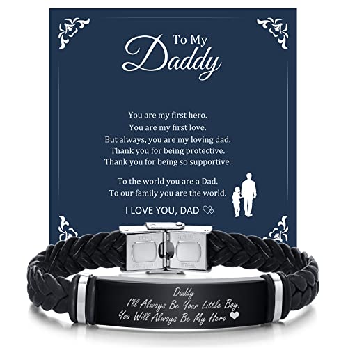 Daddy Gifts Mens Bracelets for Christmas - Black Braided Leather Bracelets Engraved Love Daddy Message for Men, Gifts For Dad from Daughter, Father's Day Birthday Christmas Xmas Presents