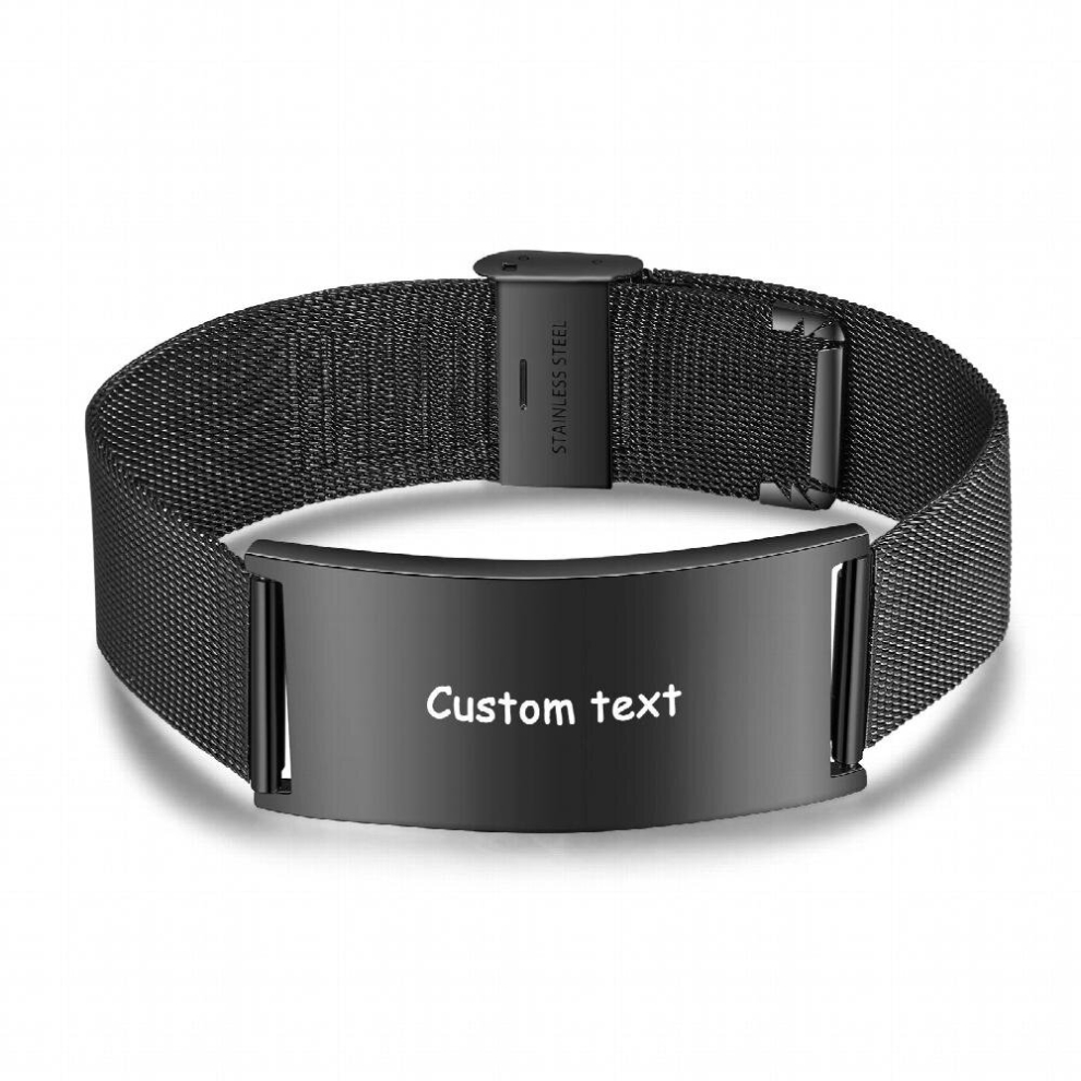 WBW Medical Alert Bracelet Custom Engraving Medic Info ID Bracelet Customized Emergency Medical Bracelets Personalized Gifts for Men Women Dad Fathers Day (Black)