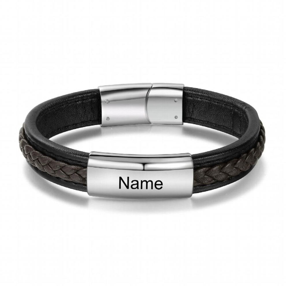 EDSG Personalised Mens Bracelet Engraved Leather Bracelets Gift for Him Customised Valentine, Birthday, Wedding, Christmas, Father's Day Free Engraving with Gift Box Hand Finished in UK(Any Text)