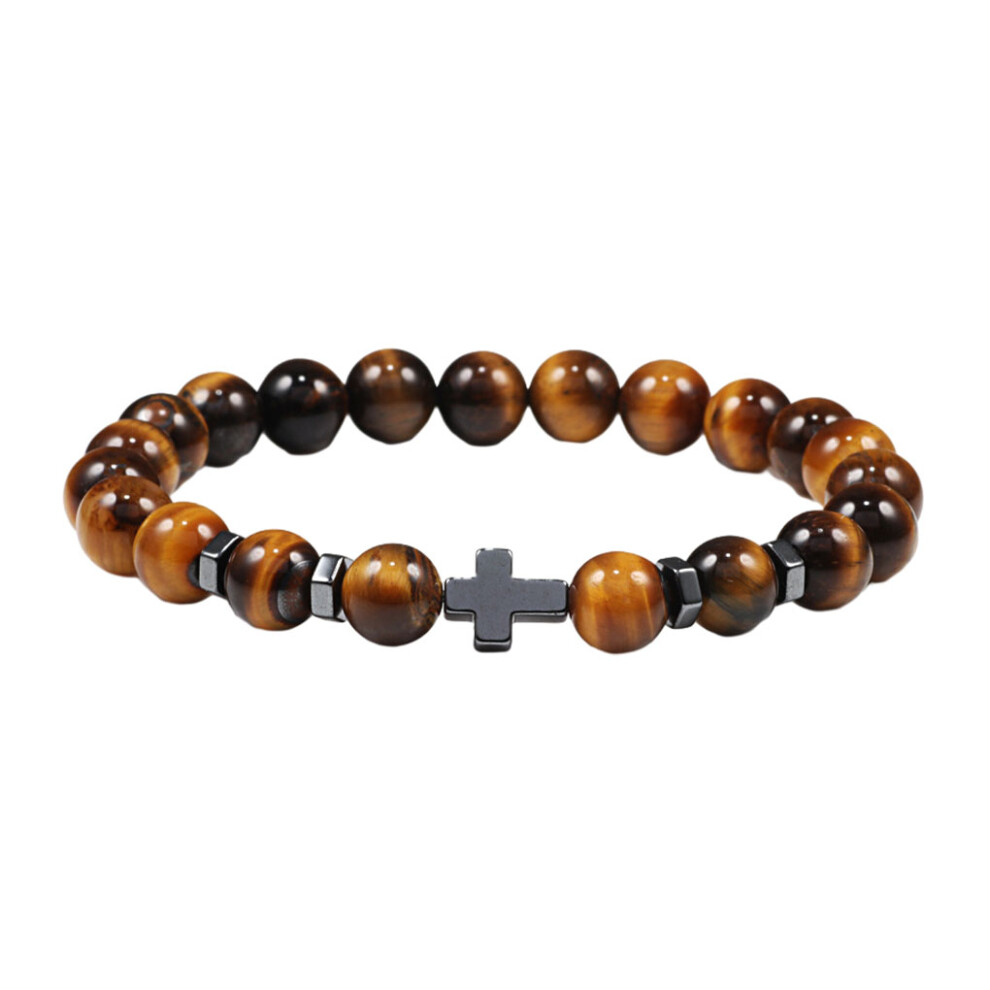 Mens Crystal Bead Bracelet Tigers Eye Stone Anxiety Protection Healing Bracelets Adjustable Spiritual Gifts for Women Men Him Boyfriend Husband Valentines Anniversary Fathers Day Birthday