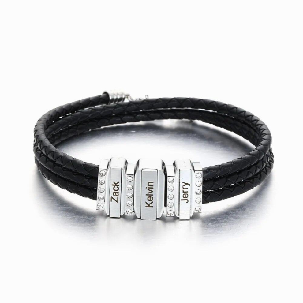 Glooraca Personalised Bracelets for Men Custom Men's Name Bracelets Braid Leather Bracelet with 1-5 Names Engraved Personalised Gift for Men Dad Fathers Day Valentines (3 Names)