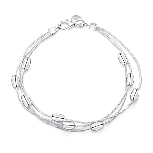 Silver Bracelet for Women Layered 925 Sterling Silver Bracelets Charm Friendship Silver Bracelets for Women