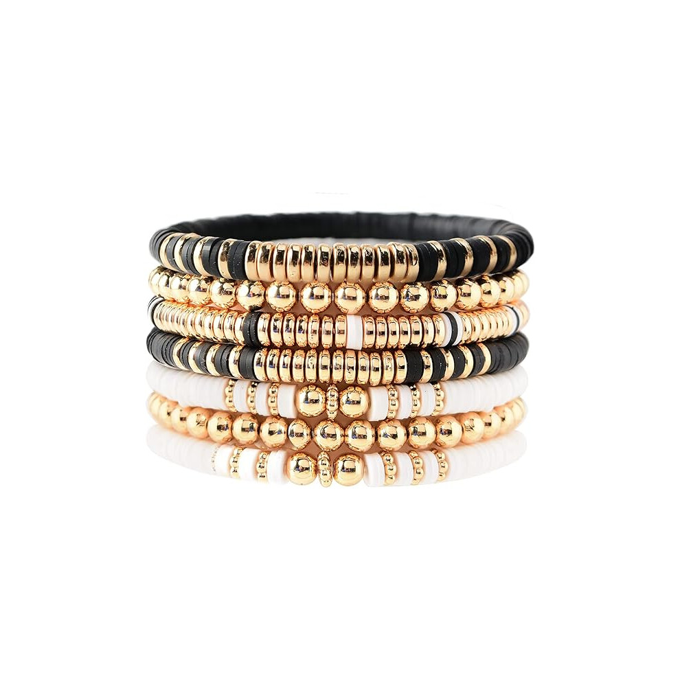HYHONEY 12pcs Friendship Bracelets Beaded Bracelets Heishi Bracelet Cute Bracelets Stack Vinyl Clay Disc Bead Surfer Stretch Summer Beach Bracelets Fo