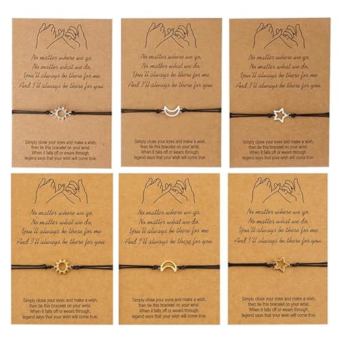 WUFGWBD 6 Pieces of Sun, Moon and Star Bracelets with Cards, Simple Bracelets, Friendship Bracelets, Fashionable and Creative Bracelets, Adjustable Braided Rope Bracelets
