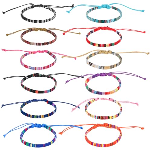 Prasacco 12 Pack Boho Bracelets Woven Bracelet Set Braided Bracelets String Bracelets Thread Bracelets Ankle Bracelets Friendship Bracelet for Women Men Teens