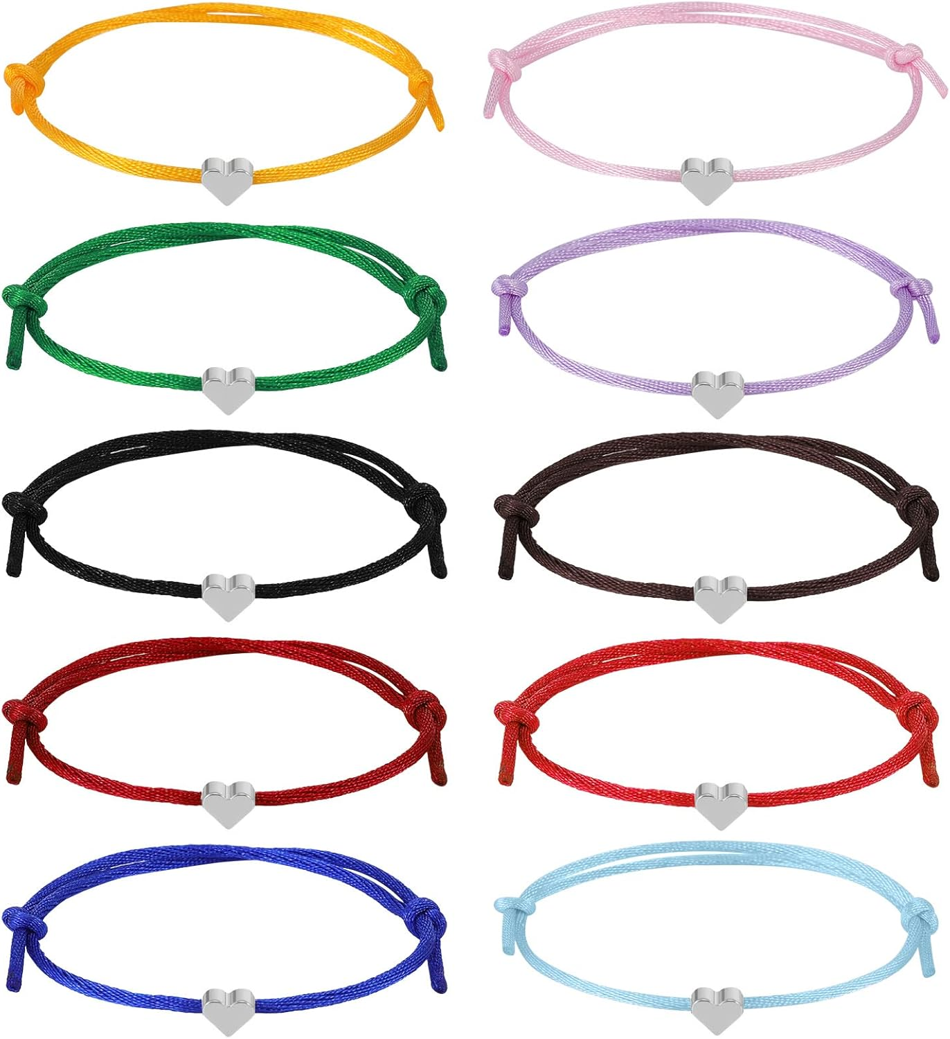 Bestomrogh 10 Pcs Heart Rope Bracelets Couple Bracelets, Adjustable Friendship Bracelets Long Distance Matching Bracelet Jewelry Gift for Best Friends Lover Couple Mens Teen Girls