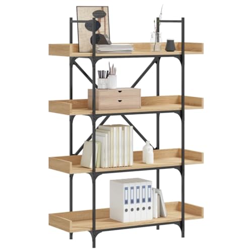 GeenYuu Bookcase 4 Shelves Smoked Oak 100 x 33 x 145.5 cm, Wood Material, Metal Frame, Adjustable Legs, X-shaped Cross Braces, Sturdy Standing Shelf for Living Room